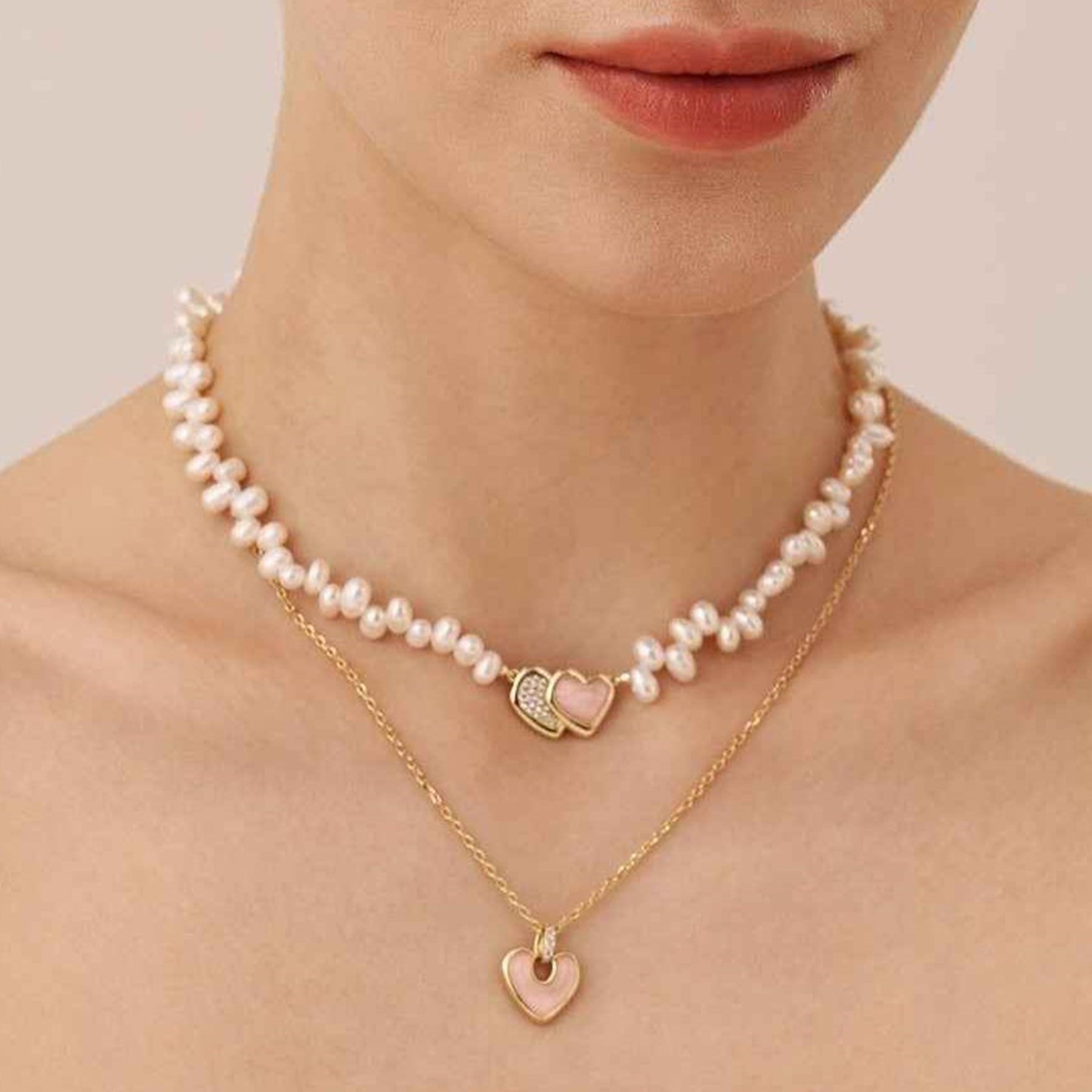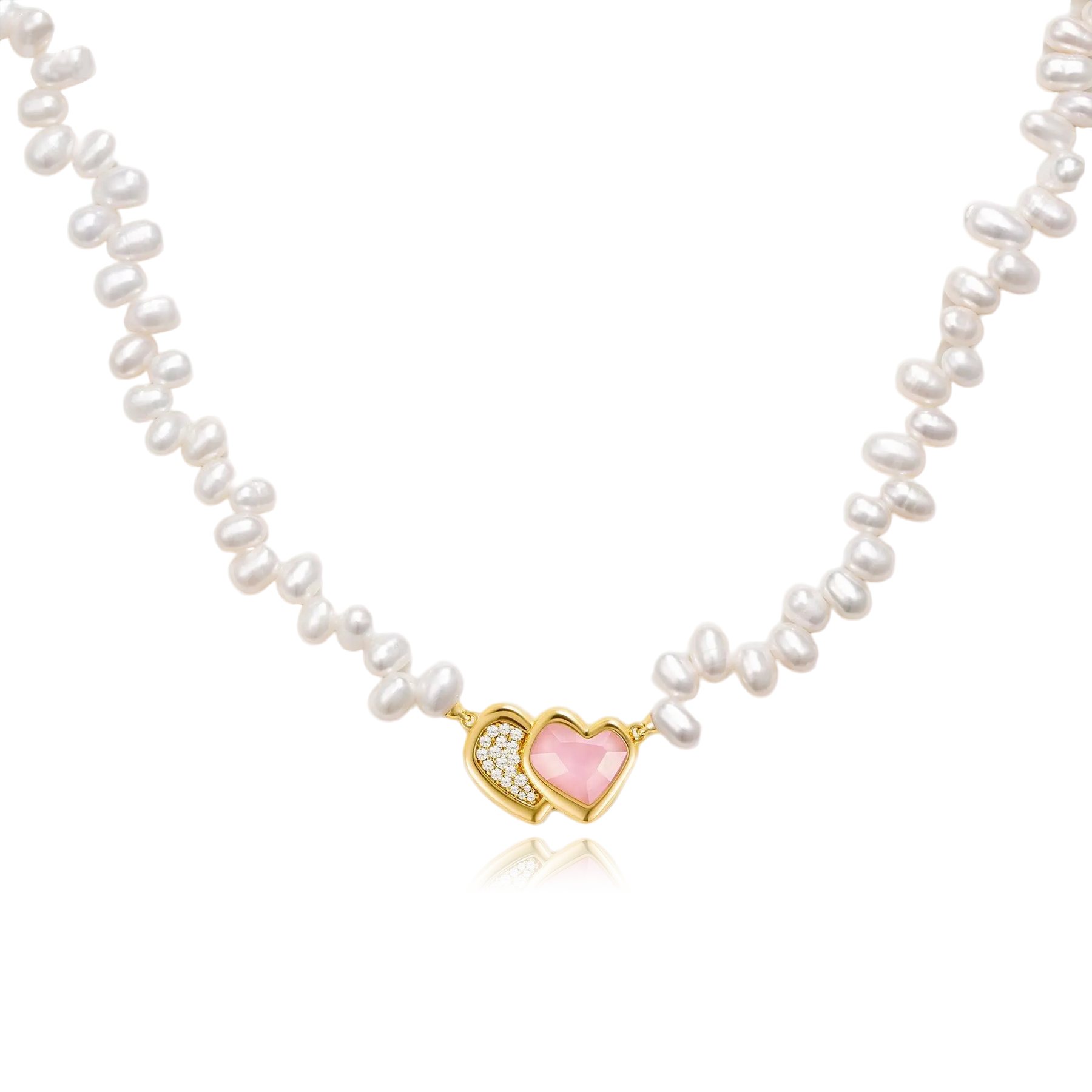 This necklace is crafted from softly lustrous freshwater pearls and finished with a heart-shaped charm that brings a warm, romantic accent. The subtle contrast between the smooth pearls and the polished charm creates a balanced, intimate feel, designed to sit naturally at the neckline. Elegant yet emotional, it is made for everyday wear, expressing affection, warmth, and a quiet sense of devotion.