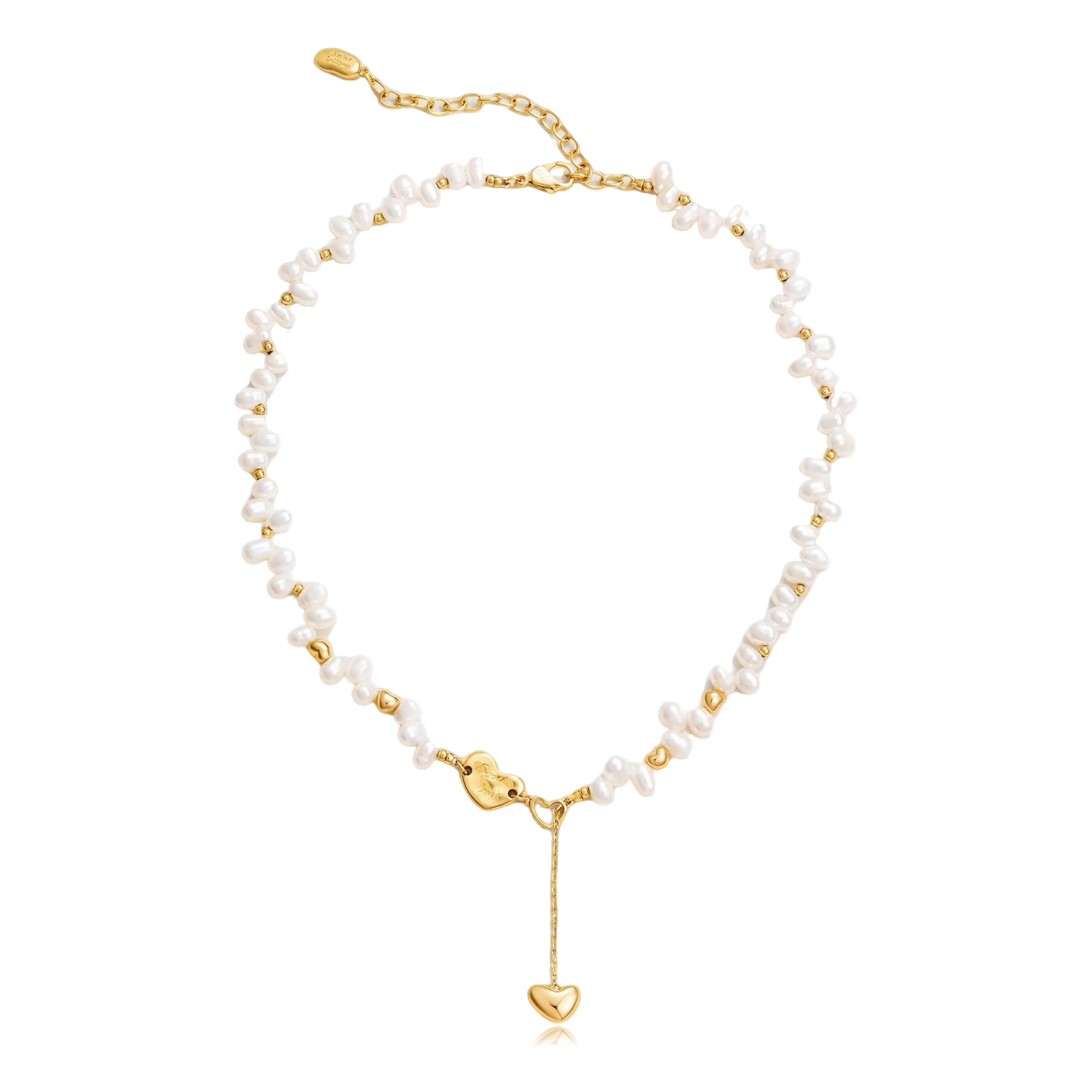 The Lucky Heart Pearl Necklace combines timeless elegance with a playful twist. This stunning piece features lustrous pearls delicately interspersed with golden heart-shaped accents. The charm of the heart-shaped clasp at the back adds a unique and romantic touch, making this necklace the perfect balance of sophistication and whimsy. Designed to be versatile, it can elevate both casual and formal outfits, providing a chic yet meaningful addition to your jewelry collection. The Lucky Heart Pearl Necklace is ideal for anyone who loves a blend of elegance and a little bit of luck.